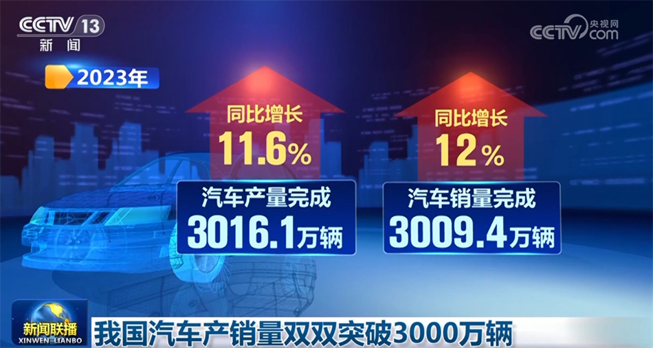 中国汽车工业协会1月11日发布的数据显示,2023年,我国汽车产销量首次双双突破3000万辆,创历史新高。