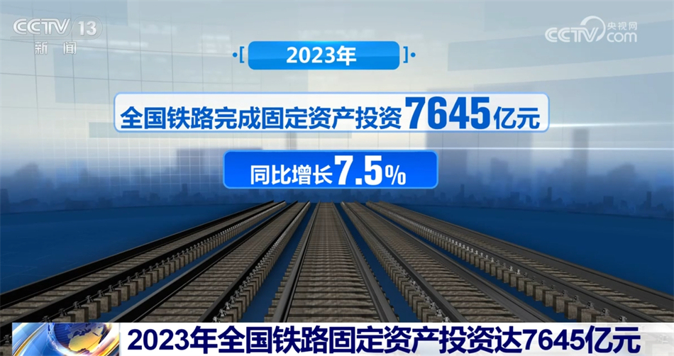 数据显示,2023年,全国铁路完成固定资产投资7645亿元、同比增长7.5%。