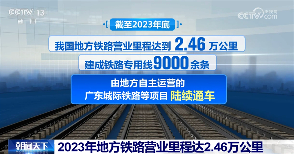 截至2023年底,我国地方铁路营业里程达到2.46万公里,建成铁路专用线9000余条,由地方自主运营的广东城际铁路等项目陆续通车。经行政许可的铁路运输企业达到79家。