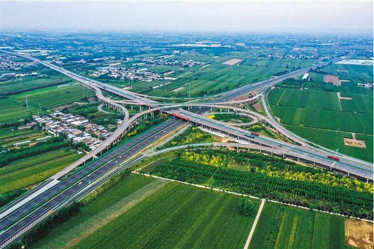 9月23日航拍的京昆高速蒲城至涝峪公路改扩建项目高陵北枢纽互通立交段(资料照片)。记者 袁景智摄