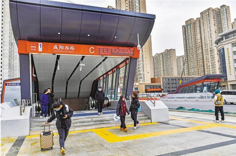 12月15日,乘客走出西安地铁1号线咸阳西站C出口。西安地铁1号线三期的开通运营,完善了西安都市圈交通线网布局,加快了西咸一体化发展。记者 袁景智摄