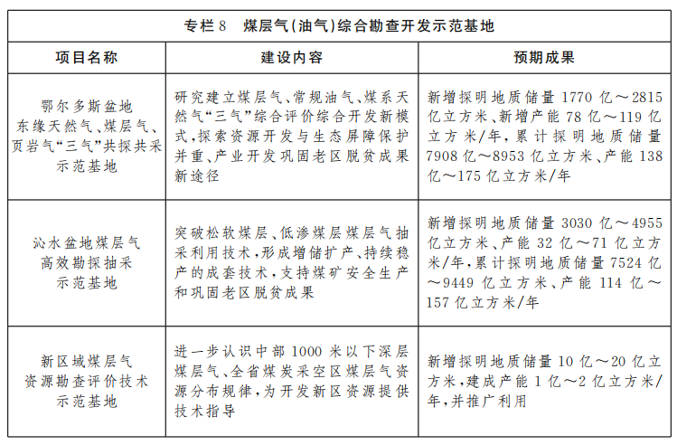 ——资源保障能力显著提升。力争煤层气新增探明地质储量5000亿~8000亿立方米,累计超过1.5万亿立方米、达到1.6亿~2.0万亿立方米;力争探明一批新的接替矿区,为下一规划期提供新的探明地质储量,接续煤层气产业发展的资源保障奠定良好基础。