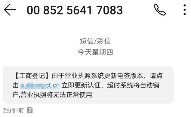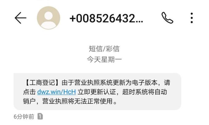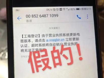 近期,全国多地发生冒充市场监督管理局,向手机用户群发短信,以营业执照需更新认证,不然就要销户为由,针对性诱骗商户点击短信内网址链接、填写银行卡信息等方式骗取验证码,后通过银行快捷支付功能盗刷卡内资金,以此实施诈骗的事件。短信内容如下图所示: