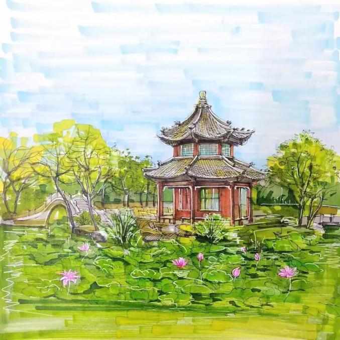 有亭桥曲栏,有花圃园囿