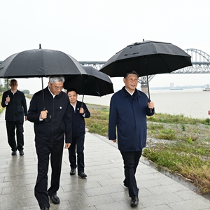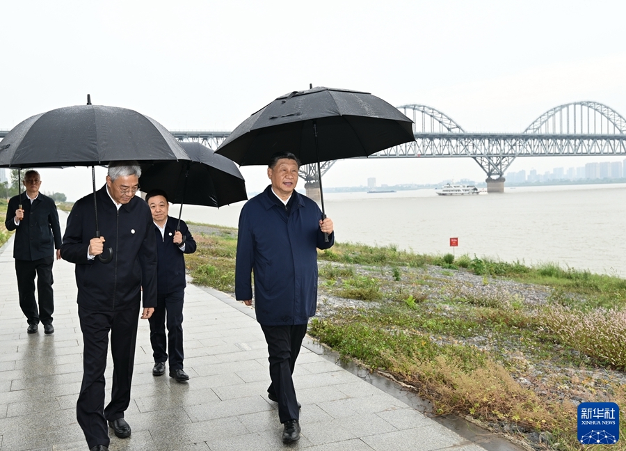 10日下午,习近平来到九江市考察调研。在长江国家文化公园九江城区段,习近平登上琵琶亭远眺长江,冒雨沿江堤步行察看沿岸风貌,仔细询问长江水位、水质、航运、防洪、禁渔等情况,听取当地崩岸治理、航道疏浚、岸线生态修复等工作进展介绍。习近平指出,长江是长江经济带的纽带。无论未来长江经济带怎么发展、发展到哪个阶段,都不可能离开长江的哺育。要从人与自然和谐共生的生命共同体出发,着眼中华民族永续发展,把长江保护好。