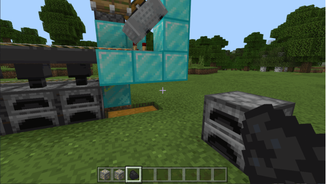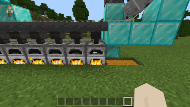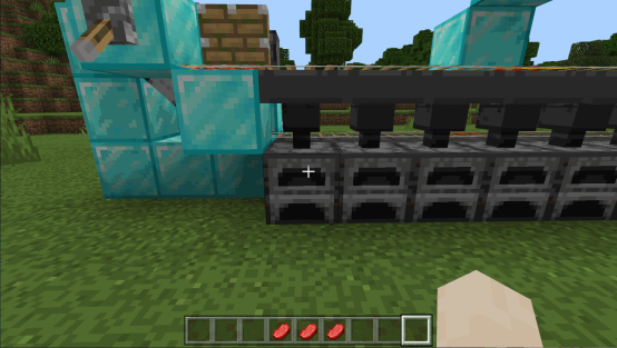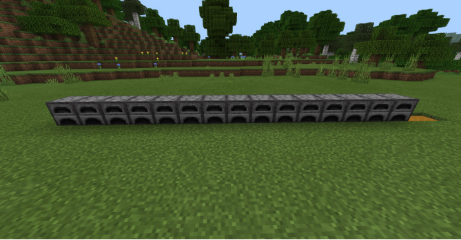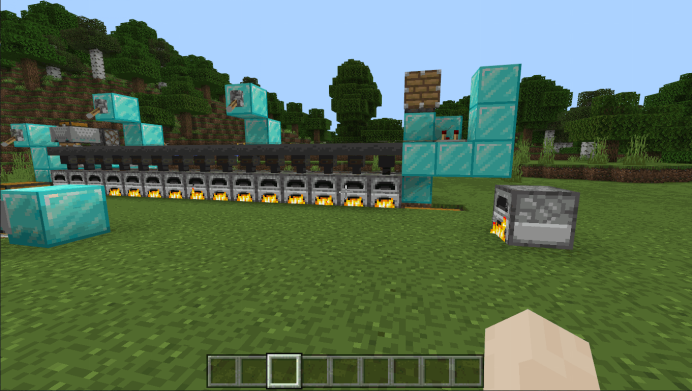 很多冒险家会想到多做一些熔炉,可是熔炉多起来一个个点开熔炉去烧制物品就会很麻烦,所以我们就可以使用矿车自动平均分配物品给熔炉(包括燃料~)
