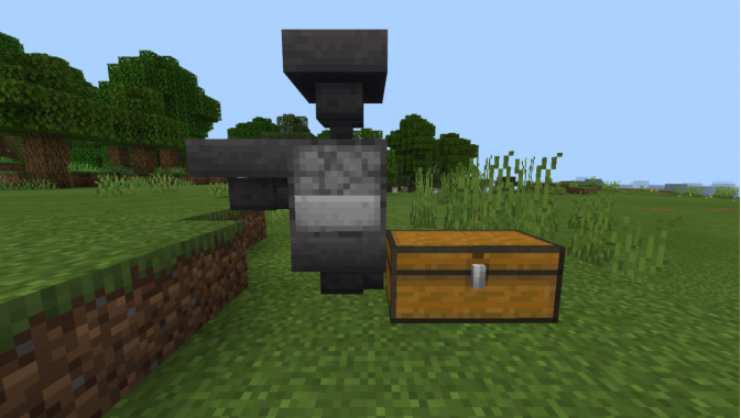我们在制作之前先了解一下熔炉,熔炉其实有三个接口,在它的上方和下方放置漏斗分别可以输入烧制物和输出烧制物,后方则可以输入燃料,知道这些我们就可以开始啦