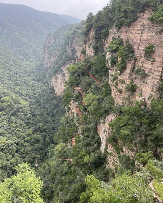 地处豫晋两省五县交界处。省级地质公园,整条峡谷由红色石英砂岩构成,从谷底到崖壁全成红褐色。12亿年前这里曾是一片汪洋大海,丹峡正是沧海桑田的有力见证,峡谷还能看到当年海洋波浪冲刷留下的石印。