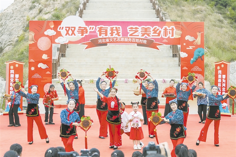 阜平县大道村上演的“‘双争’有我 艺美乡村 河北省文艺志愿服务百姓村晚”现场。