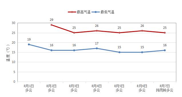 预计今天夜间至明天白天,全市多阵雨天气,明天夜间起全市转为多云天气。未来三天气温较前期略有下降,白天最高气温维持在24~29℃,平均风力2-3级。