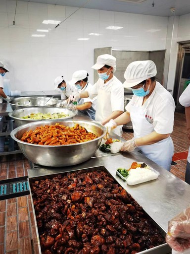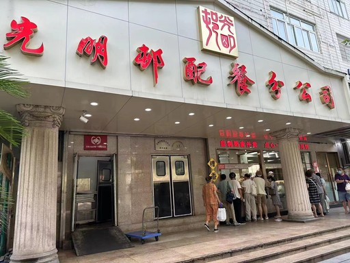 拥有鲜肉月饼、招牌熟食熏鱼、上海本帮酱鸭等特产的“光明邨”是上海家喻户晓的老字号餐饮品牌之一。位于鲁班路上的光明邨配餐分公司成立于2011年,是由政府投资建设、国企承担运营的一家老年助餐配餐中心,之前负责黄浦区4个街道的助老午餐。2022年,黄浦区民政局将之升级为老年助餐“中央厨房”,为全区10个街道的老年人提供上门送餐服务,每天大约服务3000位老年人。