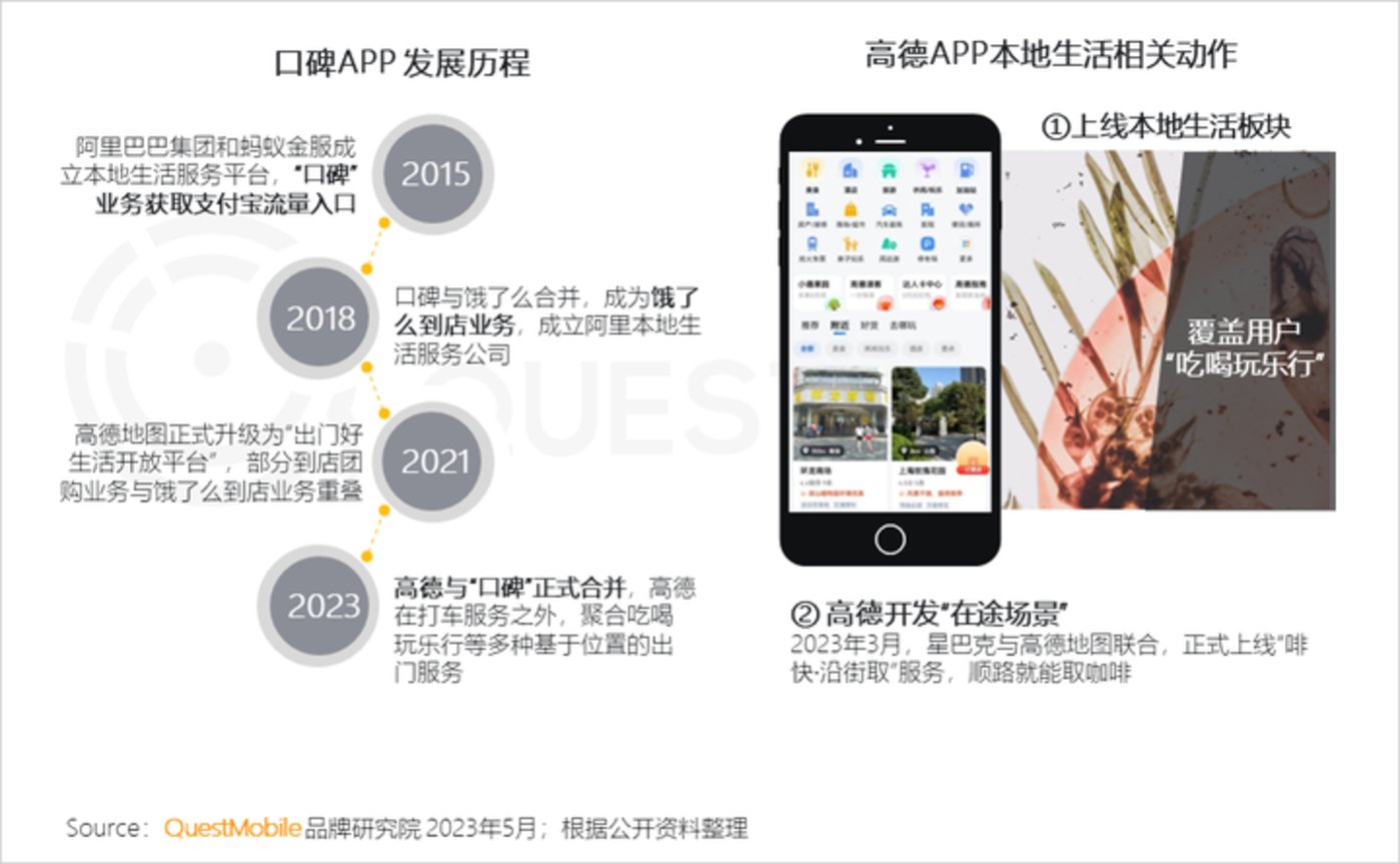 2023年3月,高德与阿里本地生活旗下的到店业务口碑正式合并,自此阿里旗下所有到店业务统一整合至高德地图的入口中,这一举动释放出阿里再战本地市场的信号。