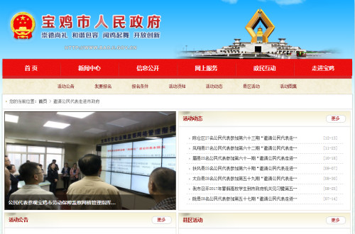 (二)规范管理,精准公开。一是加强政务公开体制机制建设。经市编办批准,已将宝鸡市政务信息办公室更名为宝鸡市政务公开办公室,在名称上、职能上与省政府政务公开办公室对口统一,为我市政务公开工作提供有力的组织保障。二是加强网站信息内容建设。结合全省政府网站绩效评估指标的调整和政务公开工作任务的新变化,市政府门户网站政务公开栏目新增18个支栏目,优化调整关闭26个支栏目,并加强内容更新保障力度,政务公开栏目设置科学合理,更加符合绩效评估要求。针对省政府反馈我市政府门户网站政务公开栏目存在问题,先后整改10多次,并举一反三,全面反复排查,存在的突出问题得到了有效解决。三是认真开展“问题地图”专项清理工作。按照省政府《关于开展“问题地图”专项清理工作的通知》要求,我市迅速安排部署,确定专人负责,对市政府门户网站、各县区、各部门网站进行了全面排查,对网站中未按照规定登载使用地图的单位要求立即整改,现已全部整改完毕。