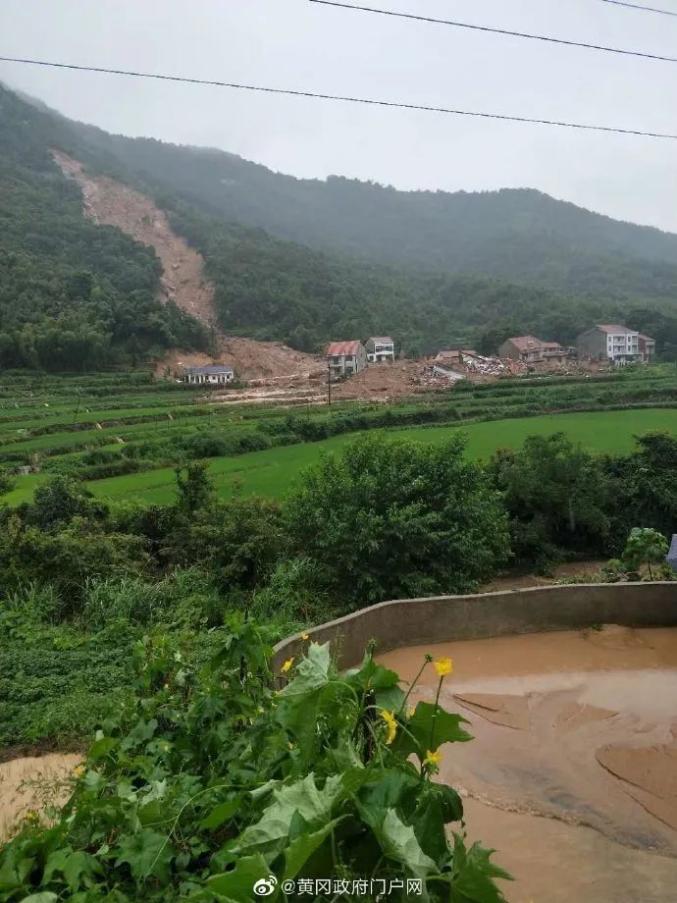 受特大暴雨影响,7月8日凌晨4时许,黄梅县大河镇袁山村3组突发山体滑坡,导致5户9名群众被埋。目前该村其他40多名村民已转移到安全地带。对被埋群众的抢救正在进行中。