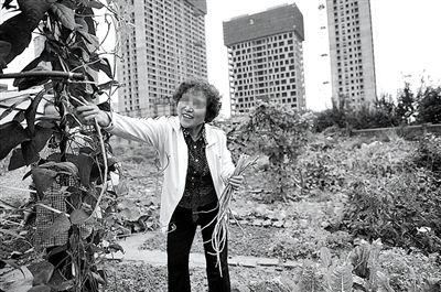 2011年,李妍的母亲艾凤月在甘晓幼儿园的空地种菜。