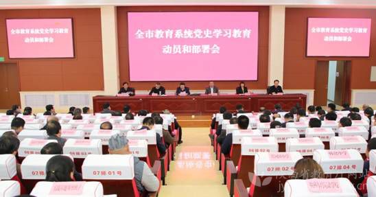 【榆林市】2021年3月22日上午,榆林市教育局召开全市教育系统党史学习教育动员和部署会议,深入学习贯彻习近平总书记在党史学习教育动员大会上的重要讲话精神和中央、省委、市委、教育部、陕西省教育工委的动员大会精神,对全市教育系统党史学习教育工作进行再动员、再部署。榆林市教育局党组书记、局长沈效功出席会议并讲话,市教育局党组成员、副局长韩玉红主持会议。沈效功指出,开展党史学习教育,是党中央立足党的百年历史新起点、统筹中华民族伟大复兴战略全局和世界百年未有之大变局、为动员全党全国满怀信心投身全面建设社会主义现代化国家而作出的重大决策,是加强党的建设、践行初心使命、永葆党的生机活力、在新时代坚持和发展中国特色社会主义、推进中华民族伟大复兴历史伟业的必然要求。全市教育系统各级党组织和广大党员要切实提高政治站位,认真学习领会习近平总书记重要讲话精神,切实把思想和行动统一到党中央决策部署和省委、市委、教育部、陕西省教育工委工作要求上来。沈效功要求,全市教育系统要准确把握目标要求,高标准高质量推进党史学习教育走深走实。把学党史、悟思想、办实事、开新局贯穿始终,以务求实效、走在前列的标准高质高效抓好党史学习教育各项工作。一要牢记初心使命,全面把握党史学习教育的目标要求。要将党史学习教育融入履职尽责、担当作为、真抓实干中,做到学史明理、学史增信、学史崇德、学史力行,把学习教育成效转化为推进榆林教育发展的实际行动,推动“十四五”榆林教育改革发展开好局、起好步。二要坚持突出重点,切实把握好党史学习教育的核心内容和重点任务。牢牢把握党史学习教育六个方面主要内容,紧紧围绕“六个进一步”要求,不断从党的百年光辉历史中汲取精神力量,为推动全市教育综合改革发展统一思想、凝聚共识、明确方向。三要聚焦关键任务,严格落实党史学习教育各项工作安排。充分发挥课堂教学的主渠道作用,在全市教育系统广泛开展党史宣传教育,抓好专题学习、政治引领、专题培训、“我为师生群众办实事”实践活动和专题组织生活会五项工作,教育引导党员和师生知史爱党、知史爱国。四要创新学习方法,推动党史学习教育做到位见实效。紧紧围绕立德树人根本任务,深入推进党史学习教育进校园进课堂进头脑,扎实开展“三活动一表彰”系列活动,使红色传统和革命精神深入师生心灵。沈效功强调,开展党史学习教育是党中央的重大决策部署,是当前的一项重大政治任务。全市教育系统各级党组织要高度重视,精心组织,强化党建引领,以高质量党史学习教育推动榆林教育高质量发展。一要学党史、悟思想,牢牢把握社会主义办学方向,坚持马克思主义指导地位,坚持扎根榆林大地办教育,全面贯彻党的教育方针,把正确的政治方向、价值导向贯穿办学立校、育人育才的全过程。二要学党史、办实事,推动各项教育教学工作取得实效。三要学党史、解难事,切实解决教育热点难点问题,切实提升教育治理能力和治理水平。四要学党史、开新局,全面深化教育综合改革,以昂扬姿态奋力谱写榆林教育新时代追赶超越新篇章,以优异成绩迎接建党一百周年。