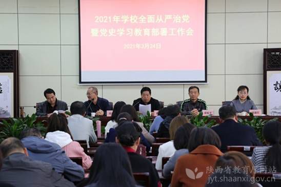 【陕西省自强中等专业学校】3月24日下午,该校召开2021年学校全面从严治党暨党史学习教育部署工作会议。会议安排部署了2021年全面从严治党工作,对学校党史学习教育工作进行了动员部署,组织学习了学校《党组织领导的校长负责制实施细则(试行)》。会议由副校长高福岐主持。 会上,该校党委书记、校长段瑞亭指出,2020年,学校党委以习近平新时代中国特色社会主义思想为指导,全面贯彻党的教育方针和国家特殊教育提升计划,紧扣我校事业发展大局,扎实推进我校党的政治、思想、组织、作风、纪律建设,为全面提高党建工作质量,全面打赢新冠肺炎疫情防控阻击战、总体战提供了坚强保证。2021年学校党委要切实加强政治建设,加强党史学习教育和对党忠诚教育,全力推动党建和业务深度有效融合,努力推进学校特殊教育事业向更高水平、更优质量持久有力地蓬勃发展,办好让广大师生和人民群众满意的学校,以实际行动向建党100周年献礼。一要持续加强政治建设,坚决做到“两个维护”;二要持续深化理论武装,夯实理想信念根基;三要持续推进组织建设,提升基层党组织凝聚力战斗力;四要继续加强作风纪律建设,全面从严正风肃纪;五要进一步完善制度措施,强化管党治党责任落实;六要深入推进精神文明建设,创建团结奋进、健康和谐的文明校园。他希望各党支部和全体党员要把牢政治方向,进一步树牢“四个意识”,坚定“四个自信”,坚决做到“两个维护”,始终在政治立场、政治方向、政治原则、政治道路上同以习近平同志为核心的党中央保持高度一致;要提高政治能力,在贯彻执行中央和省委决策部署、应对突发事件、完成急难险重任务中,不断提高把握方向、把握大势、把握全局的能力,提高辨别政治是非、保持政治定力、驾驭政治局面、防范政治风险的能力,更好担负起党和人民赋予的政治责任。会上,党委副书记、纪委书记贾桂平宣讲了学校《党史学习教育实施方案》。党委要求,开展党史学习教育是贯穿全年的一项重大政治任务,各党支部要切实扛起党史学习教育的直接责任,高标准高质量完成各项学习教育任务。校党委成员要通过听取汇报、参加学习讨论、参加专题组织生活会等方式,加强对各支部党史学习教育的指导和督促检查, 确保党史学习教育有力有序推进。准确把握党的历史发展的主题主线、主流本质,加强思想引导和理论辨析,正确认识和科学评价党史上的重大事件、重要会议、重要人物等,更好正本清源、固本培元。加强宣传,为学校开展党史学习教育营造浓厚舆论氛围。要以高质量的党史学习教育标准推动学校各项工作高质量开展,为学校“十四五”快速稳步发展开好局、起好步,以优异的成绩庆祝建党100周年。副校长祁淑红组织学习了《陕西省自强中等专业学校实行党组织领导的校长负责制实施细则(试行)》。会上,组织进行了《2021年度全面从严治党主体责任书》《2021年度安全工作及消防安全目标责任书》签订工作。