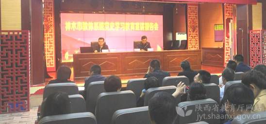 【神木市】近日,该市教体系统举行党史学习教育宣讲报告会,神木市委宣讲团成员李福林作宣讲,神木市教体局党组书记、局长苏永华主持报告会,教体局机关、局属单位全体工作人员、各学校党组书记等100余人聆听了报告。会上,李福林结合大量生动党史案例,详细讲解了党史学习教育重要意义等方面内容,整场报告主题鲜明、内容丰富、重点突出、意义深刻,引领与会人员重温了党的百年历程,进一步了解掌握了党史和神木人文历史,既有理论的高度,又有实践的深度,既体现了历史精神,又展现了人文情怀。为神木市教体系统党员干部提供了精准指导和有力帮助。