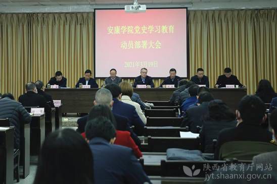 【安康学院】3月19日,该院召开党史学习教育动员部署大会,深入学习领会习近平总书记在党史学习教育动员大会上的重要讲话精神,认真贯彻落实党中央决策部署和省委、教育部、省委教育工委工作要求,并对该院党史学习教育工作进行安排。该院党委书记、院长丁巨涛作动员讲话,党委副书记胡波持会议。丁巨涛指出,习近平总书记在党史学习教育动员大会上的重要讲话,为开展好党史学习教育指明方向,提供根本遵循。要牢牢把握党史学习教育的目标要求,做到学史明理、学史增信、学史崇德、学史力行,学党史、悟思想、办实事、开新局。结合学校的发展实际,坚持以上率下、上下结合,将学习教育融入日常、抓在经常,悟透创新理论伟力,守牢立德树人初心,开创高质量发展新格局。要准确把握党史学习教育重点内容,进一步感悟思想伟力,增强用党的创新理论武装全党的政治自觉;进一步把握历史发展规律和大势,始终掌握党和国家事业发展的历史主动;进一步深化对党的性质宗旨的认识,始终保持马克思主义政党的鲜明本色;进一步总结党的历史经验,不断提高应对风险挑战的能力水平;进一步发扬革命精神,始终保持艰苦奋斗的昂扬精神;进一步增强党的团结和集中统一,确保全党步调一致向前进。要扎实落实党史学习教育的关键任务。抓好专题学习,抓好政治引领,抓好专题培训,推进“我为师生办实事”实践活动,抓好专题组织生活会,开创学校建设发展新局面。要以高质量党史学习教育,推动学校高质量发展。从历史中找准坐标、总结经验、汲取力量,并结合学院实际,继续发扬学院精神,在“干实事、解难事、谋大事、创新事、长本事”上下功夫。党史学习教育是党的政治生活中的一件大事,抓好党史学习教育,必须坚持系统性思维,上下一体联动、创新方式方法,将学习教育贯穿到立德树人全过程。要以开展党史学习教育为动力,认真做好学校各项工作,用扎扎实实的学习教育成果和工作成效迎接建党一百周年。胡波要求,一是提高政治站位,深刻认识党史学习教育的重大意义。二是树立马克思主义学风,做到真学真懂真信真用。三是在学用结合上下功夫。