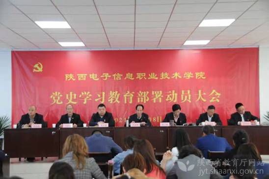 【陕西电子信息职业技术学院】2021年4月8日,该院召开党史学习教育动员部署大会。会议深入学习贯彻习近平总书记在党史学习教育动员大会上的重要讲话精神,传达全省教育系统党史学习教育动员和部署视频会议精神,安排部署全院党史学习教育工作。该院党委书记石光华作动员讲话,常务副院长林工祺主持会议。会上,该院纪委书记、副院长年小望传达了习近平总书记在党史学习教育动员大会上的重要讲话,副院长张成现传达了全省教育系统党史学习教育动员和部署视频会议精神,宣传部部长李泽宇宣读了院党史学习教育组织机构及《实施方案》。石光华指出,在全党开展党史学习教育,是以习近平同志为核心的党中央立足党的百年历史新起点,统筹中华民族伟大复兴战略全局和世界百年未有之大变局,为动员全党全国满怀信心投身全面建设社会主义现代化国家作出的重大决策。深入开展党史学习教育,是砥砺初心使命奋进新征程的内在要求,是发扬党的优良传统和优良作风的内在要求,是凝心聚力深化教育改革发展的内在要求,对全面落实立德树人根本任务和开创该院“十四五”时期发展新局面具有十分重要的意义。石光华强调,学习党史的目的在于指导工作实践。要准确把握党史学习教育的总体要求和重点任务,要把“学党史、悟思想、办实事、开新局”总要求贯穿党史学习教育全过程,做到学史明理、学史增信、学史崇德、学史力行。要突出学习内容,要深刻铭记中国共产党百年奋斗的光辉历程,深刻感悟中国共产党始终不渝为人民的初心宗旨,学习传承中国共产党在长期奋斗中铸就红船精神、延安精神、抗疫精神、脱贫攻坚精神等伟大精神。要深刻领会中国共产党成功推进革命、建设、改革的宝贵经验,以及党的伟大成就增进学院改革发展信心,立足学院改革发展实践,明确目标任务,用习近平新时代中国特色社会主义思想武装头脑、指导实践、推动工作。石光华指出,开展党史学习教育是一项重大政治任务,全院要按照学院《党史学习教育实施方案》,扎实开展好党史学习教育。各部门、各基层党组织要强化政治担当,精心组织实施,领导干部要以上率下,带头学习,从严抓好落实。要丰富学习教育载体,确保规定动作做到位、自选动作有特色。要充分利用网站、新媒体等各类宣传平台,总结推广党史学习教育的好经验、好做法,为学习教育营造浓厚氛围。要加强指导和督促,对标工作要求,确保学习教育各项目标任务高标准、高质量落实。林工祺要求,全院各部门、各党支部要做好统筹兼顾,把开展党史学习教育同谋划推进“十四五”开局工作、学院重点工作结合起来,按照院党委要求,狠抓落实,确保党史学习教育取得实效,以优异成绩迎接建党100周年。