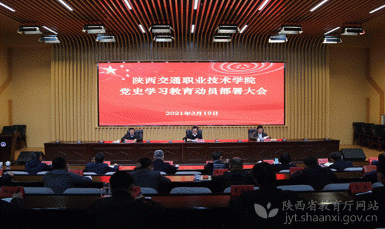 【陕西交通技师学院】3月25日上午,该院召开党史学习教育动员大会,深入学习贯彻习近平总书记在党史学习教育动员大会上的重要讲话精神,认真贯彻落实党中央决策部署和省委、省委教育工委要求,对全院开展党史学习教育进行安排部署。院党委委员、各党支部书记、各党支部委员、全体中层以上领导干部参加了会议。院党委书记、院长杜建忠作动员讲话,会议由党办主任侯玉印主持。会议指出,中国共产党历来重视党史学习教育,注重用党的奋斗历程和伟大成就鼓舞斗志、明确方向,用党的光荣传统和优良作风坚定信念、凝聚力量,用党的实践创造和历史经验启迪智慧、砥砺品格。在庆祝建党百年华诞的重大时刻,在“两个一百年”奋斗目标历史交汇的关键节点,在全党集中开展党史学习教育,正当其时,十分必要。开展党史学习教育是当前和今后一段时期的重要政治任务,要切实履行好党史学习教育的主体责任,把党史学习教育作为一项重要政治任务抓紧抓实抓到位。会议强调,全体党员教职工要切实增强思想自觉、政治自觉和行动自觉,认真学习领会,抓好贯彻落实。要在学史明理上下功夫,从党史学习教育中补钙强基,增强政治向心力,坚定教育高质量发展的决心和信心;要在学史增信上下功夫,从党史中汲取宝贵经验,切实增强政治敏感性和政治鉴别力,进一步增强“四个意识”、坚定“四个自信”、做到“两个维护”;要在学史崇德上下功夫,从党史中厚植为民情怀,把党史学习教育、作为广大师生开展特色社会主义教育的重要机遇切实抓好;要在学史力行上下功夫,在党史学习中汲取奋进之力,围绕2021年学院各项重点工作,奋力谱写“十四五”开局之年教育高质量发展新篇章。会议强调,要把党史学习教育贯穿到课程思政中,贯穿立德树人全过程,融入教育教学各环节。开展“我向党旗敬个礼”“唱支红歌给党听”“党的故事我来讲”活动,突出学生群体,贴近学生需求,讲好党的故事、革命的故事、英雄的故事,引导青少年听党话、跟党走。要以“我为师生办实事”为主题,办实事、办好事,解决广大师生最关心最直接最现实的问题,让师生群众感受到学习教育带来的新变化、新气象。全体党员干部纷纷表示,要通过党史学习教育,不断强化政治理论素养,贯彻落实党的教育方针政策,把爱国报国强国志向播撒在教育热土上;要通过党史学习教育,进一步明确自己的职责使命,立足岗位,奋发有为;全面增强为党育人、为国育才的责任担当,以优异成绩庆祝中国共产党成立100周年。