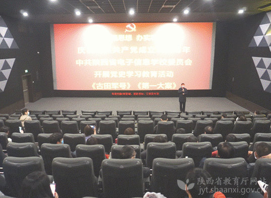 【陕西省电子信息学校】 近日,该校以多种形式开展党史学习教育。3月19日,该校组织全体党员干部观看党史学习教育影片《古田军号》《第一大案》。观影前,该校校长顾学福指出,全体党员干部要通过观影,重温党史,缅怀革命先辈浴血奋战的峥嵘岁月,回顾党取得的辉煌成就,接受革命精神洗礼,以践行初心使命、勇担时代重任的决心和时不我待、只争朝夕的精神投入工作,用优异的成绩为建党100周年献礼。这次观影活动是一堂生动的党史学习教育课,党员干部们深切体会到了老一辈革命家坚定信念、追求真理、敢于斗争、勇于牺牲的崇高品质,也被反面案例深深触动。观影结束后,大家畅谈交流,撰写观后感,纷纷表示要传承红色基因,坚持“不忘初心、牢记使命”,时刻保持头脑清醒,明法纪、知敬畏、存戒惧、守底线,做忠诚干净担当的好党员好干部。该校各团支部每周四开展“学党史 强信念 跟党走”团组织生活会,团员青年通过学习强国平台、党史学习教育官网及学校微信公众号,集体学习党的基本知识,学习了“开天辟地的大事变”“打倒列强除军阀”等党史知识。学校微信公众号、校园广播开辟专栏,定期推送、广播党史知识,营造学党史浓厚氛围。