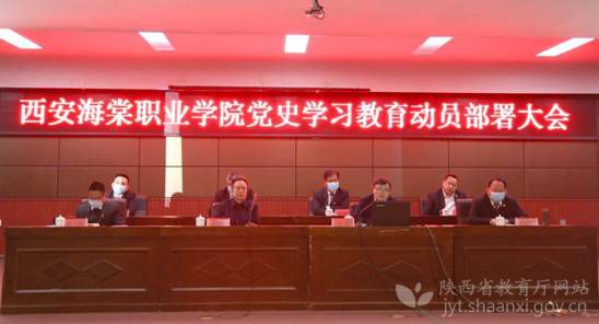 【西安海棠职业学院】近日,该院全面开启党史学习教育,深入学习领会、全面贯彻落实习近平总书记在党史学习教育动员大会上的重要讲话精神,激励全院师生奋勇前行,谱写新时代华章。3月23日下午,该院在学术报告厅召开全院党史学习教育动员部署大会。特邀西安文理学院教授王舵作了《党史学习教育——中国共产党的诞生之路》主题报告。报告深入浅出、生动精辟、逻辑清晰地对中国共产党百年奋斗历程进行了讲解,兼具理论高度和思想深度,内容丰富,观点鲜明,为该院开展党史学习教育奠定了一个非常好的基础。随后,该院党委副书记吕波代表党委作动员报告,他从三个方面就学院党史学习教育作了全面动员和安排,深刻阐述了开展学习教育的重大意义,安排部署了学习教育的重点任务,提出了具体要求。党委书记许文学作总结发言,他从把会议精神学懂吃透、抓好学习、营造浓厚氛围、推动工作落实、强化组织领导等五个方面对全院党史学习教育作出要求。开展好党史学习教育,是全年一项重大政治任务,该院党委高度重视党史学习教育。3月17日,组织收听观看陕西省委教育工委、省教育厅召开全省教育系统党史学习教育动员部署视频会议。3月19日,党委召开领导班子成员党史学习教育动员部署工作会,学习传达习近平总书记在党史学习教育动员大会上的重要讲话和中央、教育部党组相关文件精神,研究制定学院党史学习教育具体实施方案。各级党组织、党员领导干部明确目标,立足本职岗位,狠抓落实,着力提升开展党史学习教育的实效性。坚决把党史学习教育各项任务落到实处,奋力开创学院“十四五”事业发展的新篇章,以优异成绩迎接中国共产党成立100周年。