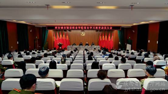 【西安城市建设职业学院】3月24日下午,该院召开党史学习教育动员大会,动员全院教职工学党史、悟思想、办实事、开新局,从党的百年伟大奋斗历程中汲取继续前进的智慧和动力。该院党委书记、督导专员王跃生作动员讲话,院长王延奇主持会议。会上,党委副书记郭海燕传达省委教育工委、省教育厅全省教育系统党史学习教育动员大会精神。党委委员、副院长张吉毓就《西安城市建设职业学院开展党史学习教育实施方案》进行说明。王跃生深刻阐述党史学习教育的重大意义、重点任务和目标要求,并对学院高标准、高质量开展党史学习教育进行部署。他指出,党史学习教育是巩固和深化“不忘初心、牢记使命”主题教育成果的延续,是夯实中国特色社会主义共同思想根基的基础。我们要提高政治站位,深刻认识党史学习教育的重大意义和目标要求。要牢牢把握重点,从党的百年历史中汲取精神滋养和智慧力量。要立足学院实际,以强有力的组织保障推动党史学习教育走深走实。王延奇要求,一是提高政治站位,深刻认识党史学习教育重大意义。二是强化政治担当,确保党史学习教育落地生效。三是加强组织领导,确保党史学习教育高质量开展。最后,王延奇希望,全体教职工要以习近平新时代中国特色社会主义思想为指导,坚守“为党育人、为国育才”的教育使命,坚定信念、勇于担当、创新求变、乘势而上,以优异的成绩向建党100周年献礼。