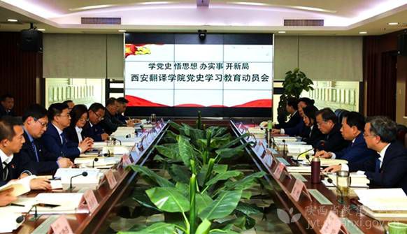 【西安翻译学院】3月24日,该院召开党史学习教育动员部署大会,深入学习贯彻习近平总书记在党史学习教育动员大会上的重要讲话精神,认真落实党中央部署和教育部党组、陕西省委相关工作要求,对全院党史学习教育进行全面动员部署。该院党委书记李虎成作动员讲话,党委委员、党委宣传部部长邱杰主持。李虎成指出,一要深刻认识开展党史学习教育的重大意义,切实把思想和行动统一到习近平总书记重要讲话精神和党中央决策部署上来,增强“四个意识”,坚定“四个自信”,做到“两个维护”;要以高度的政治自觉高标准、高质量开展党史学习教育,引导学院广大党员、干部学史明理、学史增信、学史崇德、学史力行,以党史学习教育成效推动新时代学院事业高质量发展,以优异成绩迎接建党100周年;二要深刻领会党史学习教育的目标要求,准确把握习近平总书记强调的“六个进一步”的重要内容,强化责任担当,把开展党史学习教育作为一项重大政治任务抓紧、抓实、抓细、抓到位,贯穿2021年全年;三要学院各级党组织要把开展党史学习教育同学习贯彻习近平总书记来陕考察重要讲话重要指示精神紧密结合起来,同贯彻落实学院“十四五”规划紧密结合起来,同加强内涵建设、完成本年度工作任务、做好常态化疫情防控工作以及毕业生就业等工作紧密结合起来,在学党史、悟思想、办实事、开新局上干在实处、走在前列,凝心聚力、深化改革,全力推进学院高质量发展。邱杰要求,各二级党组织要把开展党史学习教育作为一项重大政治任务,切实扛起党史学习教育的主体责任,确保学习教育有力有序推进。要立足实际,发挥各二级学院学科特色和各基层党组织优势,压实党史学习教育责任。把学习教育的成效切实转化为促进学院高质量发展的强大动力。