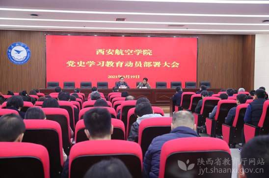 【西安航空学院】3月19日,该院在沣惠校区召开党史学习教育动员部署大会,深入学习领会习近平总书记在党史学习教育动员大会上的重要讲话精神,认真贯彻落实党中央决策部署和省委、省委教育工委工作要求,安排部署学院党史学习教育工作。该院党委书记陈平社指出,在全党开展党史学习教育,是以习近平同志为核心的党中央立足百年历史新起点,统筹中华民族伟大复兴战略全局和世界百年未有之大变局,为动员全党全国满怀信心投身全面建设社会主义现代化国家而作出的重大决策。陈平社要求,要引导全院党员干部学党史、悟思想、办实事、开新局,从党的百年伟大奋斗历程中汲取继续前进的智慧和力量,以昂扬姿态奋力开启建设高水平应用型高校新征程,以优异成绩庆祝建党100周年。陈平社就该院全面抓好党史学习教育提出四点要求,一要准确把握党史学习教育的目标要求,立足学院工作实际,高质量、有特色、富有成效的开展好学习教育;二要在学习上做到五个“真”。即做到真学、真信、真懂、真用、真诚,真心实意感悟思想伟力、实践力量、伟大精神、宝贵经验,传承红色基因、继承优良传统。真心实意忠诚党的事业,践行党的创新理论,自觉履行为党育人、为国育才初心使命,坚定不移贯彻新发展理念,努力为党工作。三要在组织上抓好五个“环节”。深入开展专题学习,切实加强政治引领,精心组织专题培训,务实开展“我为师生办实事”实践活动,高质量召开专题组织生活会。四要在实践上做到五个“结合”。要与“四史”、百年航空史、高等教育发展史学习教育紧密结合,与落实立德树人根本任务、庆祝建党百年系列活动、学院发展的历史和个人成长进步的历史、与推进学院事业发展紧密结合,加强领导,压实责任,有力有序推进学习教育各项任务。该院院长曹庆年在总结讲话中,就推动党史学习教育高质量发展作出要求。要高标准高质量推动党史学习教育开展,把学党史、悟思想、办实事、开新局的要求贯穿学习教育全过程,真正做到学有所思、学有所悟、学有所获。要切实加强统筹协调,聚焦学院发展,着力解决师生最关心、最现实的问题,做到学习教育与学院中心工作有机融合,相互促进,把学习教育的成效切实转化为促进学院高质量发展的强大动力,以优异成绩庆祝中国共产党成立100周年。该院领导、副厅级领导干部、党委委员、处级领导干部、各党支部书记、离退休教职工和学生代表参加会议。