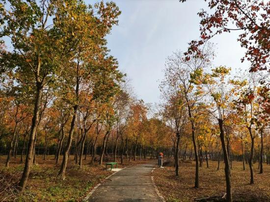 水源涵养林、沿海防护林等林地共同构筑起魔都最珍贵的绿色屏障;开放休闲林地和外环绿道-外环林带的建设,让市民可以走进森林、享受森林,也感受森林的景观功能与生态功能。在林地中远远望去,银杏、枫香等彩叶纷飞。树树皆秋色,山山唯落晖。