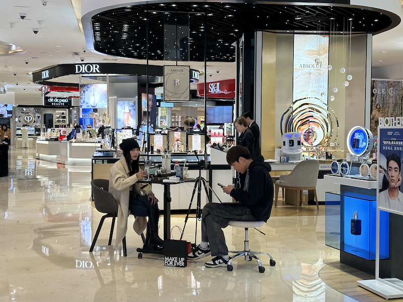 晚间时分,第一财经记者来到杭州几家银泰百货门店探访后发现,其实体店内的顾客看起来并不多,与其他城市的百货店大相径庭的是,杭州银泰百货门店内随处可见正在直播的工作人员。这些直播人员有些是品牌方自身培养的营业员,身兼柜台服务和在线直播两大业务;有些则是银泰系的员工,他们会在自家平台上轮番给不同的品牌进行直播,且每天晚间都会进行,风雨无阻。“我们在招聘营业员的时候就会进行直播培训,争取让每个营业员都可以做到线上线下均可运作。现在我们有很多订单都来自线上。”银泰百货店内一家美妆品牌店负责人告诉第一财经记者。