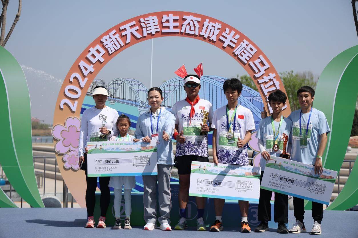 亲子跑3公里项目也进行了冠亚季军的颁奖,马爱东、马浩以13分26秒成绩夺冠,陈清清、赵悦铭以14分47秒摘得亚军,季军由张宝通和张浩获得,成绩是15分31秒。