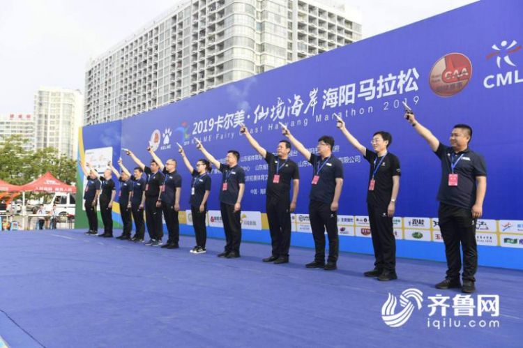 齐鲁网6月16日讯 2019卡尔美·仙境海岸海阳马拉松于6月16日上午7:00鸣枪起跑,万名参赛选手冲出起跑线,带着激情和梦想、奔跑在最美赛道上,向着终点进发。