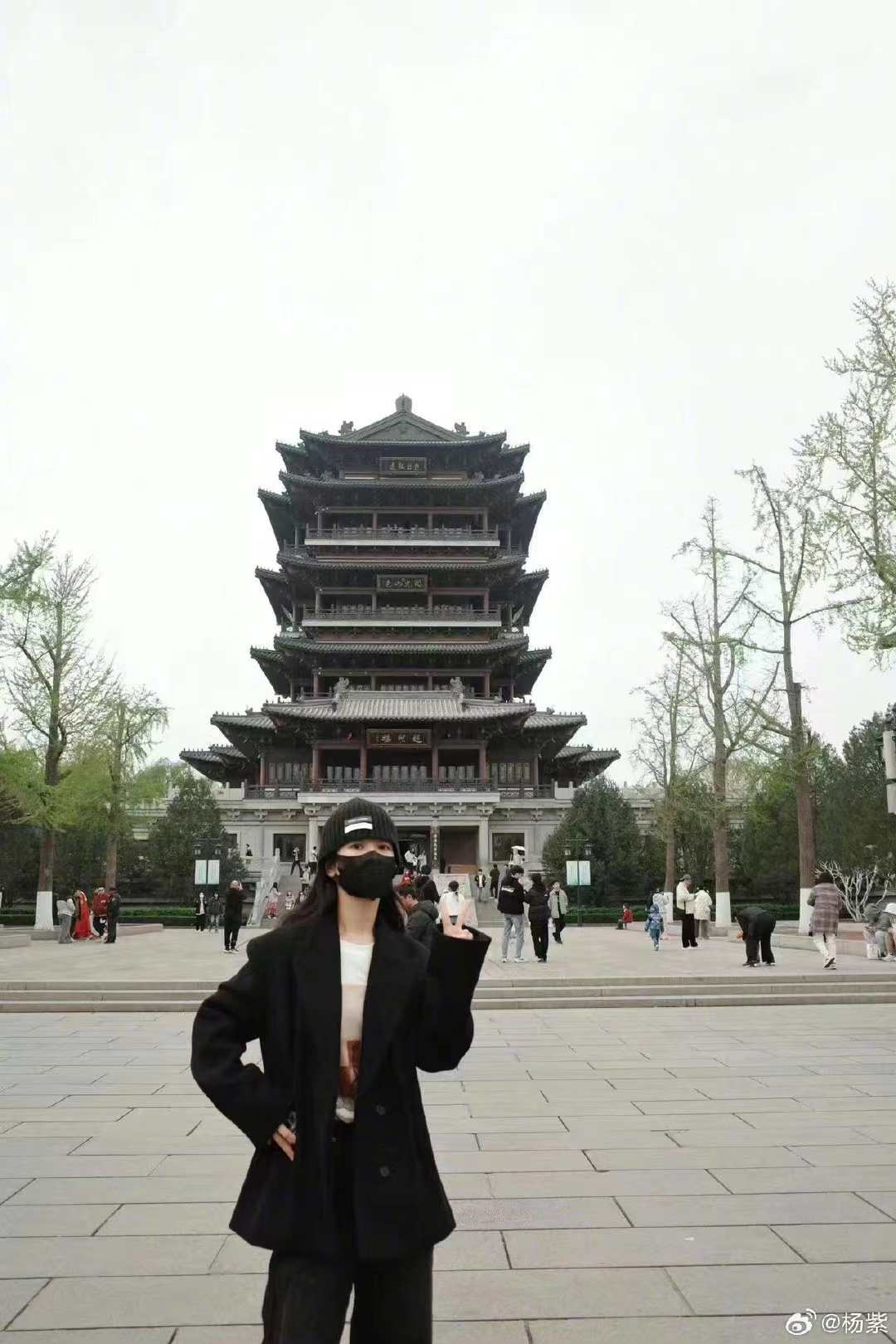 演员杨紫济南踏青。微博@杨紫 图