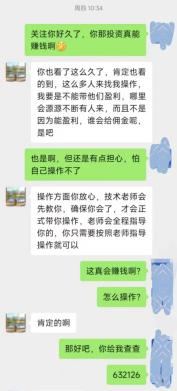 经反诈民警询问得知:王女士几年前添加了一微信好友,之后在朋友圈看到该好友经常发一些投资理财的广告,而且还晒出了别人赚了几十万甚至几百万的信息,她看着有点心动,但又担心投资失败,所以一直在观望。近期,又看到该微信好友发布的朋友圈,每天都是各种带别人赚了几百万的信息,她又心动了,就主动联系了对方,请求对方也带自己赚钱。微信好友要求王女士按要求操作手机,绝对稳赚不赔,并诱导王女士下载了“金融中国”APP,在APP内按照所谓“老师”的指导,将自己卡里的3万元钱一次性转到了对方指定的账户内进行投资。随后,王女士在该APP内看到自己的账户赚了钱,但在提现时却提示提现失败,对方说是因为操作失误导致提现失败,需要继续转账。直到这时,王女士才意识到被骗,随即报警。