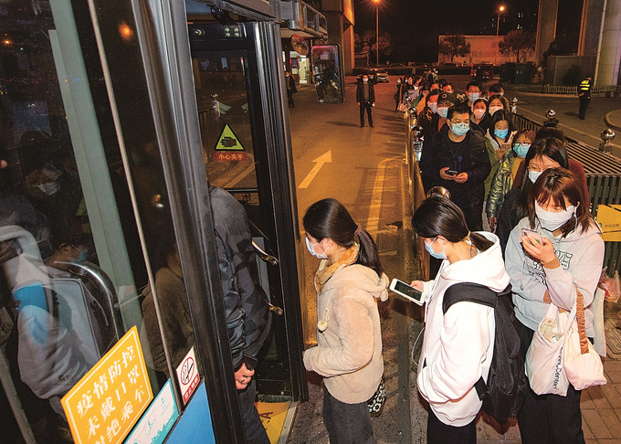 “工作在上海,居住在昆山”,已是不少年轻人的选择。在昆山高铁站,从上海下班回来的年轻打工族正排队转乘公交回家。