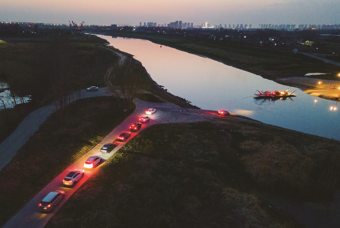 苏皖交界处的滁河上,在南京工作的滁州自驾族乘着暮色摆渡回家。