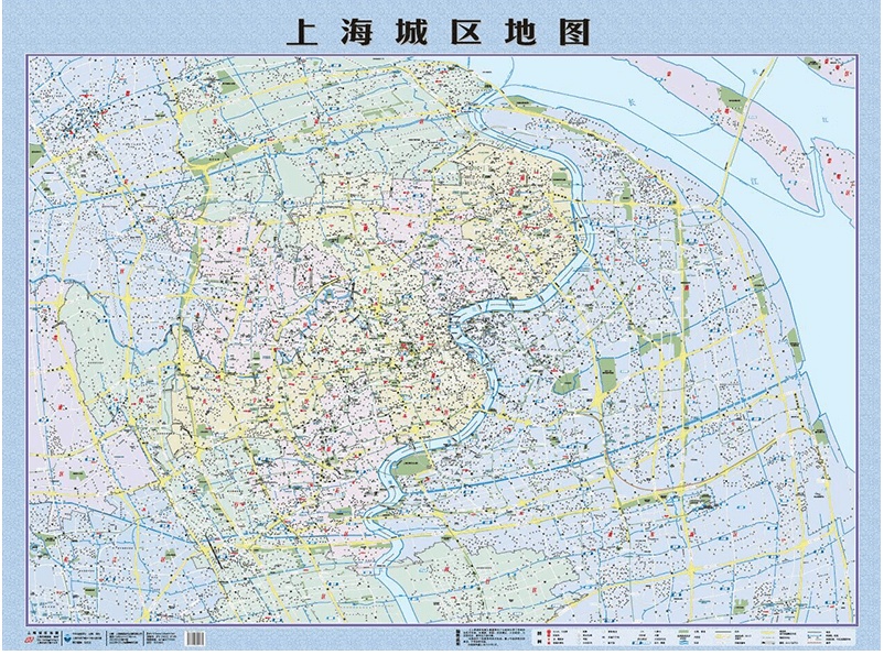2022年新版《上海城区地图》(挂图)大小为1580mm*1180mm。其核心区域包括黄浦区、徐汇区、长宁区、杨浦区、虹口区、普陀区、静安区以及浦东新区的外环内城区,主要包括行政、金融、商务、商业、旅游、交通枢纽、会议展览等专题。