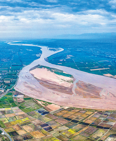 山西省运城市芮城县,蜿蜒的黄河与麦田、稻田相映衬,生态环境宜人。 薛 俊摄(影像中国)
