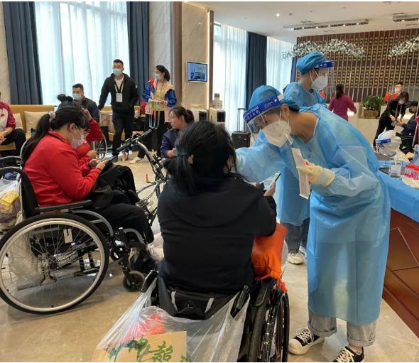 位于西安市未央区的一家酒店是残特奥会轮椅篮球项目运动员的驻地。中午11点半,来自我省及四川、河南等省份的参赛队伍陆续抵达,在志愿者和工作人员的周到服务下,运动员们进入驻地,并按照防疫要求进行测温、扫码和核酸检测。记者了解到,这里将入住参加轮椅篮球项目的10支男队和8支女队,共190名残疾人运动员。针对运动员的身体状况,驻地共配备了46名志愿者,做好各项保障服务。