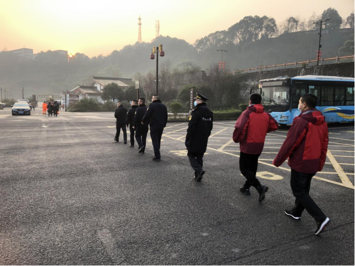 大年初三早上6点过,天还未亮,飘着小雨,黄湾中队队长王志全已来到自己的工作岗位。组织同事们对昨天的工作进行复盘,安排部署今日工作。随后,王志全整理了下制服,带领同事们走进摩肩接踵的游客中,巡查旅游秩序。