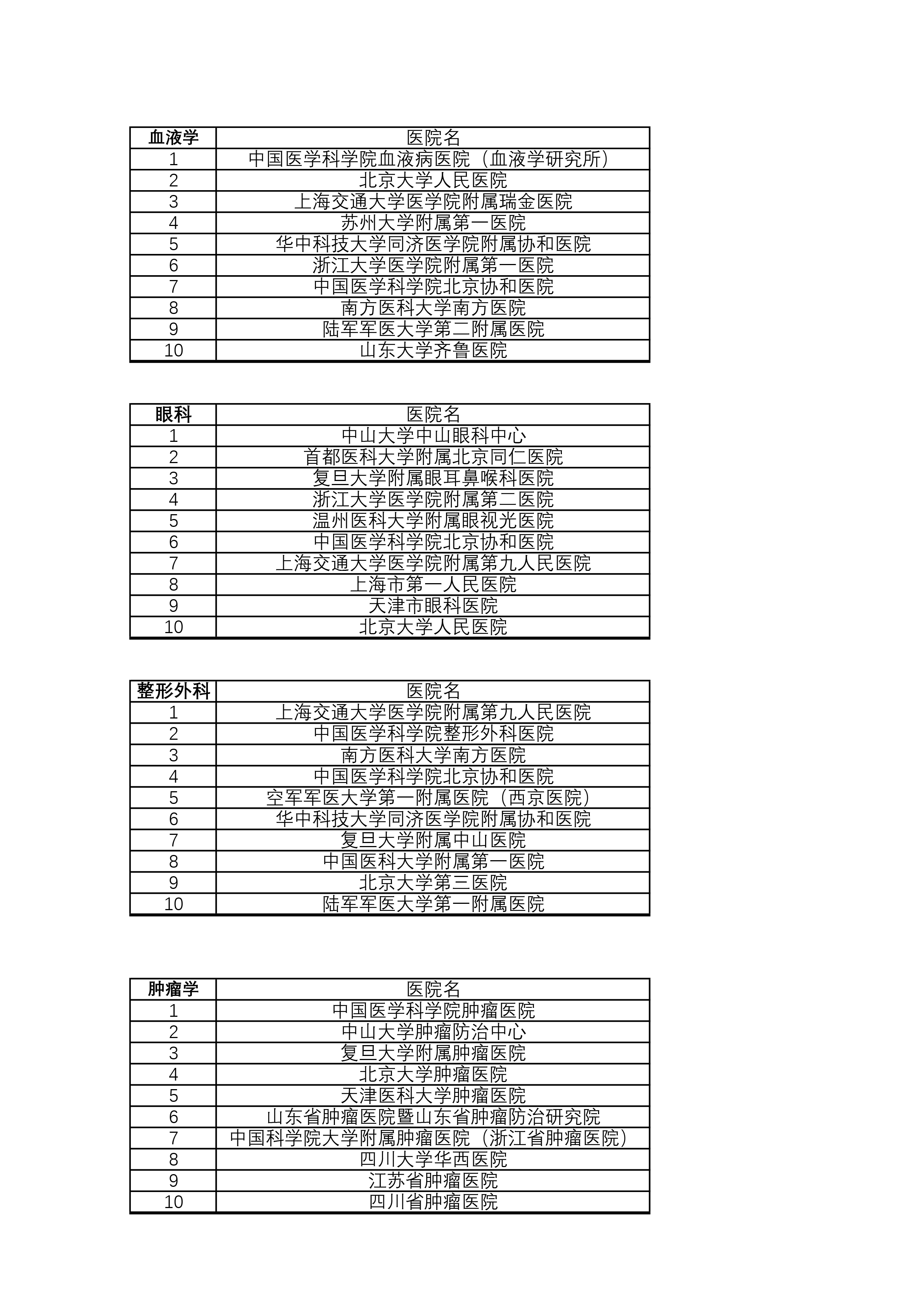 复旦版《2022年度中国医院专科声誉排行榜》覆盖45个专科