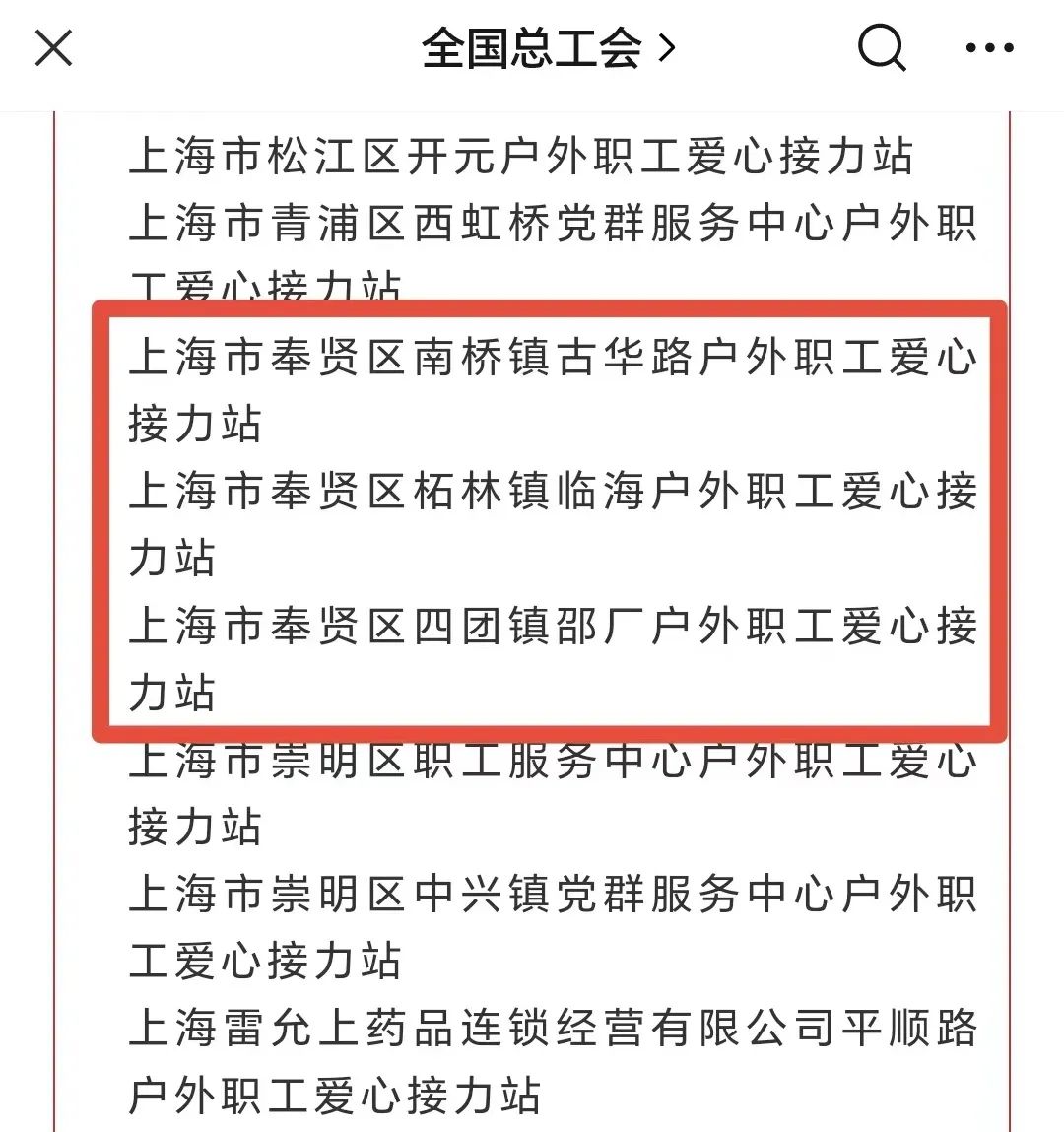 近日,全国总工会发布2023年“最美工会户外劳动者服务站点”(以下简称最美驿站)名单,共有2000个工会驿站被确认为2023年最美驿站,奉贤区3个站点榜上有名!