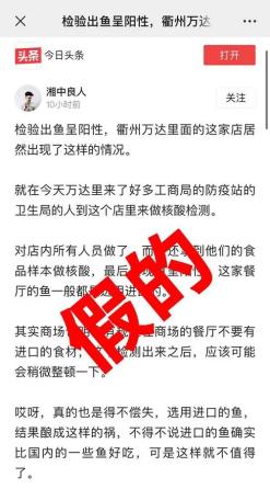 九、浙江衢州一餐饮店巴沙鱼检测呈阳性?